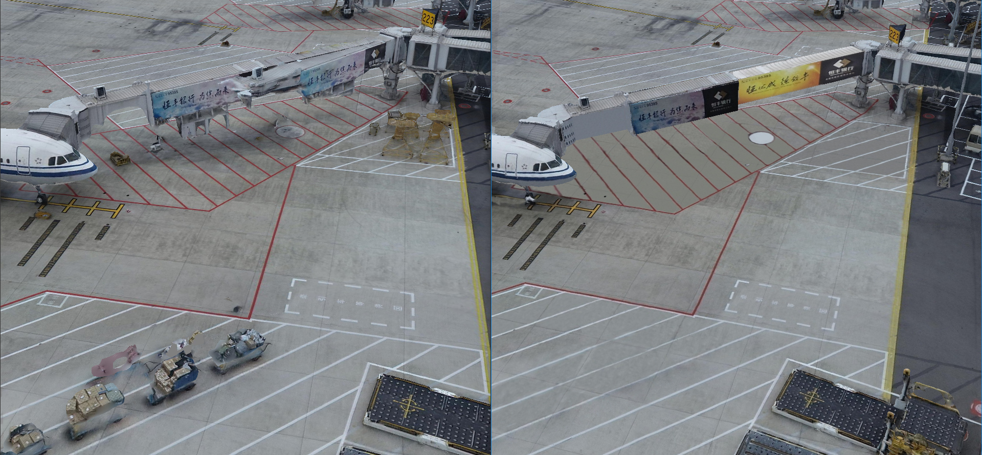 利用航空傾斜影像、地面影像聯合進行單體化建模,解決常規的傾斜攝影方式單體化建模的底部紋理扭曲等問題,同時解決了傳統方式建模的精度不高和真實感不強等問題,進而將傾斜攝影方式建模和傳統建模的各自優點相結合。我們累計完成的精細單體化建模,覆蓋大型商超(綜合體)、大型機場、古建、水壩、廠區、高鐵車站、室內建模等多種類型的建筑設施。